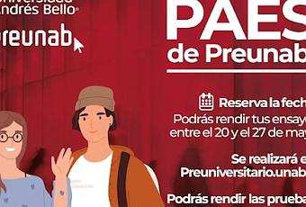 Se comparte invitación de la Universidad Andrés Bello (UNAB) a participar del Ensayo PAES Online para los estudiantes de 1° a 4° medio. El ensayo gratuito se realizará entre el 📅 20 y 27 de mayo.