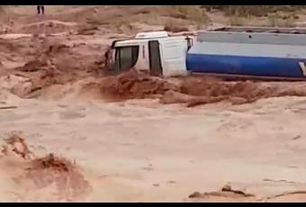 Durante el fin de semana se cumplió con el pronóstico que había emitido el Servicio Meteorológico Nacional por fuertes lluvias y esto ocasionó inconvenientes en la zona de Rincón de los Sauces. Un lector de fuego24.com envió imágenes y video del sector de Desfiladero Bayo ubicado a 10 kilómetros de la localidad petrolera, donde se observa un camión detenido en medio del gran caudal de agua.