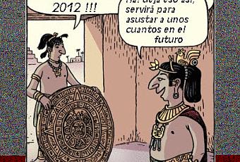 Esta imagen fue hecha en Estados Unidos: evidentemente se equivocaron de calendario pues el de la caricatura corresponde al calendario azteca, no al maya. De todo modos ayuda a tomarse con humor la "profecía". Conforme se va acercando el 12 de diciembre, fecha "pronosticada" por los mayas para el fin del mundo, los artículos, mensajes de correo, postenblogsy redes sociales se van multiplicando. Pero, ¿qué hay de verdad en el así llamado "fin del mundo profetizado por los mayas"? La respuesta más completa y adecuada que he visto en lawebes la que trabajó la red social católica Aleteia.org con seis notables aclaraciones. La nota es esta: "¿Se acabará el fin del mundo en diciembre de 2012?" (incluye un video de poco más de 4 minutos que más bien habla del fin del mundo desde una perspectiva del libro del Apocalipsis, pero puede resultar de interés). EnReligiónenLibertad.com entrevistamos al padre José Antonio Caballero, L.C., especialista en el libro del Apocalipsis, en octubre de 2010. El padre respondió a varias interrogantes interesantes sobre el "fin del mundo" de 2012. La entrevista es ésta: "2012, el fin del mundo y el calendario maya". Por último, el mismo padre José Antonio Caballero ofreció hace algún tiempo una conferencia sobre el tema de los mayas y el "fin del mundo". Dicha conferencia quedó registrada en video. Seguro que les gustará conocerla. Dura media hora pero el tiempo se va rapidísimo. A modo de conclusión debo decir que el 12 de diciembre sí se va a acabar el mundo... Se acabará como se acaba el mundo para quienes morirán el 13 de enero, 27 de abril o 29 de septiembre... o como se acabó para los que ya han muerto. Cada día se acaba el mundo para miles de personas y un día también se acabará el nuestro, se extinguirá nuestra vida aquí en la tierra. Y quizá eso sea más bien una oportunidad para la reflexión que para supersticiones. En este sentido, tal vez los mayas son un buen pretexto para acercarse a la confesión o a conocer mejor la propia fe. ***
