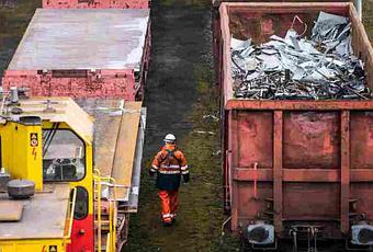 Los trenes con chatarra permanecen frente a la fábrica de acero Huettenwerk Krupp Mannesmann GmbH en Duisburg, Alemania. Se espera que el presidente Trump ordene aranceles a las importaciones de aluminio y acero desde el jueves.
