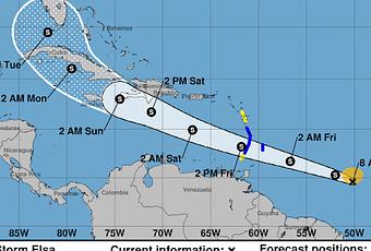 Elsa pasaría el viernes sobre o cerca de las islas Barlovento y el sábado se moviera sobre la costa sur de República Dominicana.