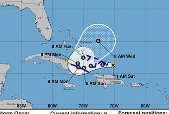 En su actual trayectoria Oscar dejaría lluvias sobre República Dominicana, principalmente en las poblaciones ubicadas más al norte.