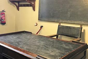 A raiz de la muerte de su esposa Leonor, Machado decide dejar Soria. Al no haber plazas libres en Madrid acepta trasladarse hasta Baeza, adónde impartirá clases de gramática francesa en este aula que podemos ver en las fotografías...