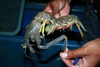 Steve Bargeron estaba pescando la semana pasada cerca de un muelle en Fort Pierce, Florida, cuando un par de pescadores se acercaron para enseñarle lo Bargeron describe en broma como una "criatura alienígena". La pareja no estaba interesada en conservar al extraño animal parecido a una langosta, que movía frenéticamente su cola, dijo Bargeron. Así que tomó algunas fotos y luego lanzó la criatura de vuelta al agua.
