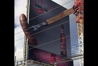 Polémica esta cartelera para "República Parrillera" que por un lado se ve una bonita aplicación de una salchicha gigante, que por donde le veas es atractiva la idea. Bueno, por donde le veas no porque del otro lado parece otra cosa.
