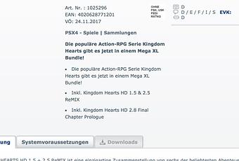 Tanto en Amazon como en Koch media Alemania se ha listado un Kingdom Hearts Collection que recoger absolutamente todo el contenido de Kingdom Hearts HD 1.5 +2.5 Remix y Kingdom Hearts HD 2.8 Final Chapter Prologue.