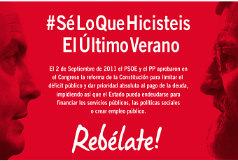 Sí, tenemos memoria. Mañana hará un año que vendisteis este país a una Europa alemanizada, preocupada por el déficit, y entre ambos –PSOE y PP, unidos y de la mano— acordasteis anteponer el pago de las deudas y la reducción del déficit a las necesidades básicas que tiene un Estado del Bienestar.