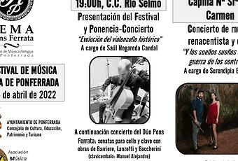 El Ayuntamiento de Ponferrada y la Asociación Música Antigua Ponferrada, presentan la 2ª edición del Festival de Música Antigua de Ponferrada “FEMA Pons Ferrata”, que se celebrará del 11 al 14 de abril.