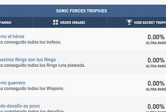 Sonic Forces cada día está más presente y cada detalle que aparece por la red es digno de destacar para vuestro deleite. En esta ocasión a través de la página web PSNProfiles se han descubierto los trofeos que albergará en PlayStation 4.