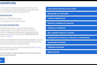 Aquí encontrarás información del proceso inscripción a la Prueba de Transición para la Admisión Universitaria elaborada en conjunto por el Sistema de Acceso y el DEMRE de la Universidad de Chile.