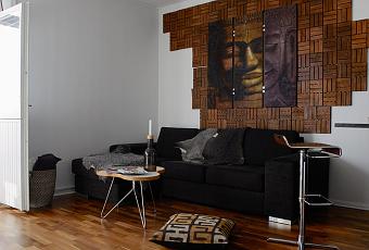 ¿Qué creéis? ¿ Se puede de verdad vivir cómodamente en un estudio de 35 m² ? a mi no me cabe ninguna duda de que con un diseño de interiores como este, unas prioridades bien definidas y muchísima simplificación, si se puede. Hay que ser realista y saber perfectamente el espacio del que se dispone y de las necesidades reales que tenemos y le exigimos a nuestra vivienda. Por ejemplo, en esta casa no hay ni mesa, ni sillas de comedor, tan solo un par de mesas de centro, una mini barra de cocina y los muebles de la terraza, eso me da la pista de que, o bien el dueño no come casi nunca en casa, no recibe amigos a cenar formalmente o sólo los invita en verano en la terraza, pero sabiendo esto ha priorizado el espacio y el mobiliario. Lo que no es compatible es querer tener de todo en tan poco espacio. Muy bien resuelto además el espacio de almacenaje en el hall con cinco armarios. Feliz jueves!!