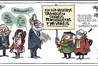 Y todavía hay que escuchar decir a los peperos que los jubilados somos unos privilegiados y que hemos sido muy bien tratados durante la crisis. ¡Que barbaridad! Hemos tenido que pagar el copago –repago— médico, lo que supone unos diez euros mensuales de media por jubilado (o sea cuatro veces lo que se ha subido de pensión) y además hemos debido ayudar a nuestros hijos y nietos para que pudieran sobrevivir en esta crisis cruel en la que nos han metido, mientras ellos ayudaban y ayudan a bancos, a empresas y a autopistas de peaje.