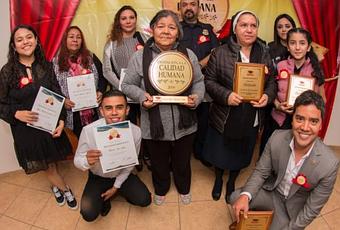 La señora María Socorro Cárdenas Valero recibió la Distinción a la Calidad Humana 2019. “Doña Coco”, como es conocida, desde hace más de 7 años, ha logrado conjuntar un grupo de personas, las cuales dan alimento a niños y personas de la tercera edad, ayudan con rehabilitación a niños con problemas de adicciones, en conjunto con un doctor apoyan con medicamentos y consultas gratuitas. Con su equipo de voluntarias, hacen lo imposible para darle alimento a las personas más vulnerables. Todos los sábados, en el Auditorio Luis Donaldo Colosio en la Colonia Hogares Ferrocarrileros, segunda sección, brindan alimentos gratuitos a cerca de 100 personas entre niños y adultos.