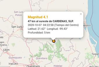 San Luis Potosí.- La madrugada de este día se reportó un sismo con intensidad de 4.1 grados , a unos 5 kilómetros de la cabecera municipal de Santa Catarina.