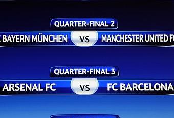 - Arsenal vs Barcelona: Sin dudas el duelo que más promete de estos cuartos de final. Con un estilo de juego similar por parte de ambos equipos es previsible una gran serie, vistosa y dinámica. Ambos equipos vienen de conseguir con facilidad el pasaje a cuartos de final. Tanto ingleses como catalanes golearon como local y se clasificaron a estos cuartos en donde, lamentablemente, uno de los dos tendrá que quedar eliminado. Será un revival de la final del 2006 donde el Barcelona venció al Arsenal y conquistó una de sus tres Champions League. Dos de los mejores técnicos en la actualidad (Guardiola y Wenger) y dos de los mejores jugadores del Mundo (Messi y Fabregas) se verán las caras en unos cuartos de final que prometen.