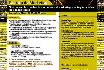 Cesine organiza el jueves, 3 de marzo de 2011 de 17:00 a 20:00 h., esta jornada que tiene como subtítulo: "Cuáles son las tendencias actuales del marketing y su impacto sobre los consumidores".