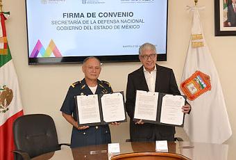 Toluca, Estado de México.- Tras afirmar que por su inquebrantable estrategia, lealtad y compromiso con la causas sociales, el Ejército Mexicano es la institución más reconocida y apreciada por los mexicanos, el Secretario General de Gobierno, Alejandro Ozuna Rivero, suscribió un convenio de colaboración con la Secretaría de la Defensa Nacional (Sedena), por conducto del General de Brigada, Diplomado de Estado Mayor, Edgar Humberto Flores García, Comandante de la 22 Zona Militar.A nombre del Gobierno del Estado de México, el Secretario aseguró que la firma de este acuerdo permitirá coordinar acciones para el traslado de pacientes militares en activo, en retiro o derechohabientes, en helicópteros de la Secretaría de Seguridad estatal, del Aeropuerto Internacional de Toluca, al Hospital Central Militar o al Hospital Militar de Especialidades de la Mujer y Neonatología, cuando así se requiera.“El Gobernador Alfredo Del Mazo Maza ha instruido trabajar coordinadamente con las fuerzas armadas para lograr que los mexiquenses vivan en un ambiente de paz y tranquilidad. Con la firma de este instrumento, nuestra entidad reitera su compromiso para contribuir a salvaguardar la vida y la salud de los elementos del Ejército Mexicano, quienes diariamente realizan esfuerzos invaluables para garantizar la paz, el orden y la estabilidad social en el territorio mexiquense”, destacó Ozuna Rivero.Por su parte, el Comandante Edgar Humberto Flores García, a nombre del Secretario de la Defensa Nacional, Luis Cresencio Sandoval, reconoció al Gobierno estatal por el trabajo y la dedicación que ha puesto en la coordinación de los asuntos de seguridad, de la 22 Zona Militar y de la propia Sedena.También reiteró el compromiso de trabajar día a día como un mexiquense más, en beneficio del Estado de México. “La 22 Zona Militar refrenda su compromiso de lealtad y trabajo al estado que tanto queremos”, afirmó.En este marco, el Secretario Ozuna Rivero entregó al General Flores García la guía representativa del Estado de México, para la parada militar del próximo 16 de septiembre, la cual, aseguró el Comandante, desfilará con el honor y la gallardía que corresponden a la entidad.