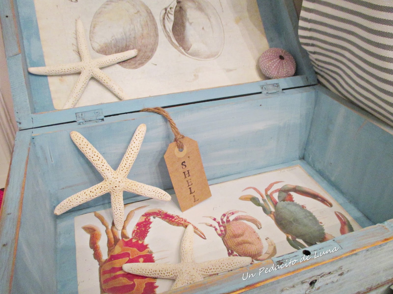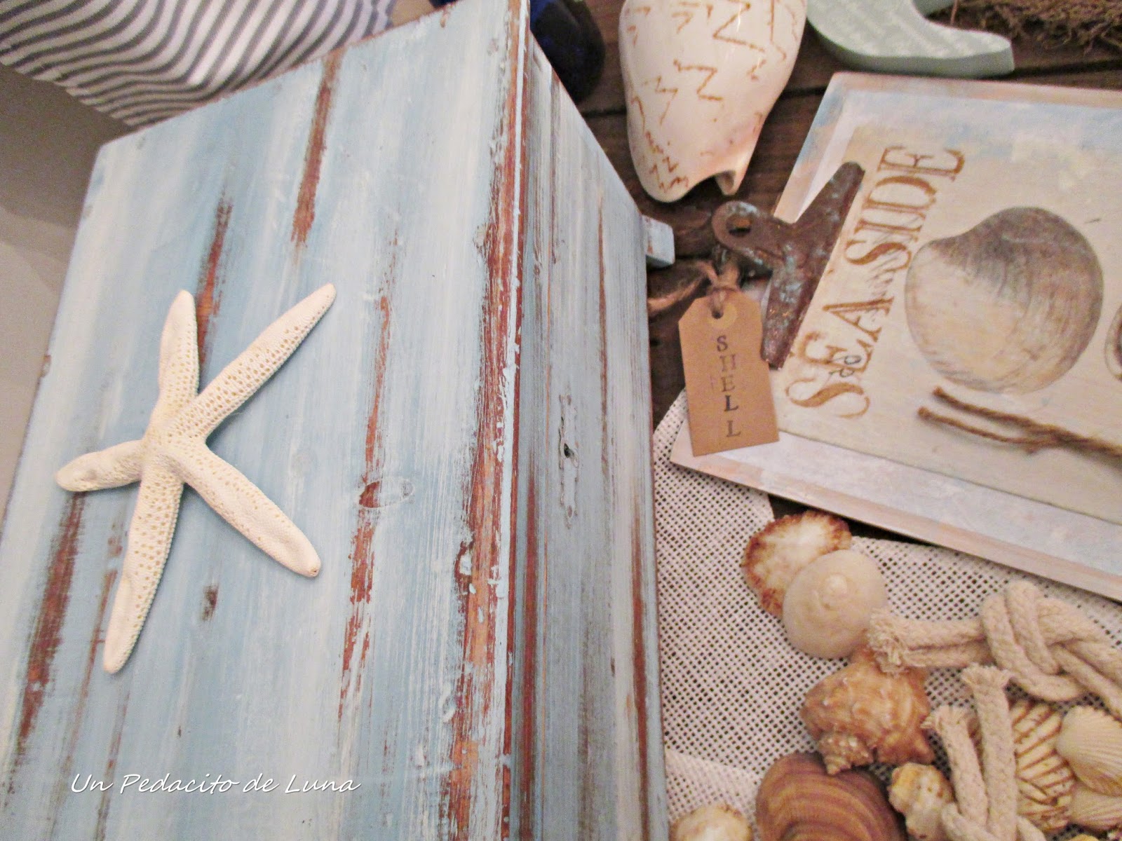 La caja tiene sabor a mar, qué mejor para contener mis caracolas y otras "golosinas"