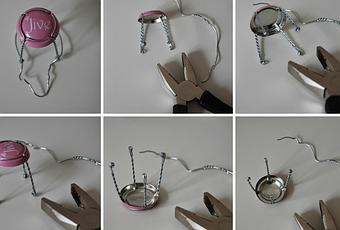 alicates, en alambre que une la esfera central, lo que serán las cuatro patitas de la silla.