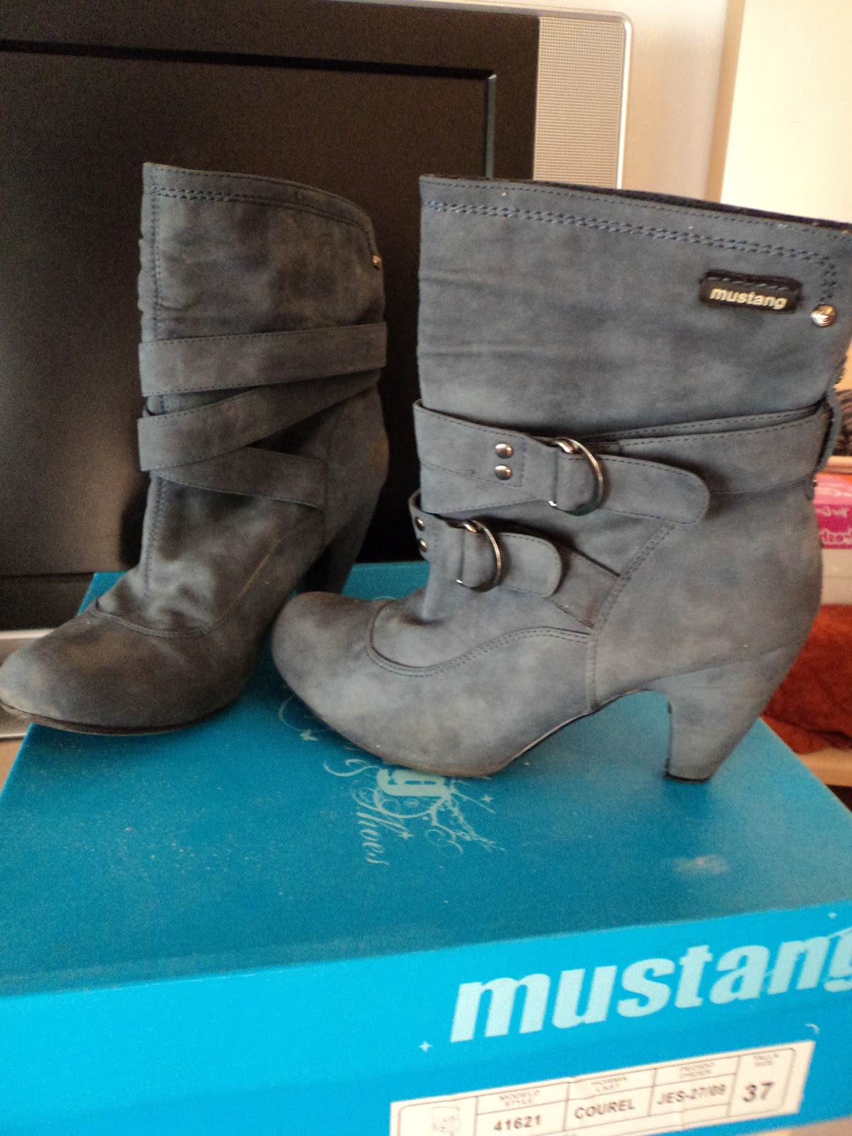 Otro de mis tesorines, estas no sabia si enseñarlas, ya que son del año pasado, pero es que me Encantan! La única que pega que les puedo dar es que cuando eran nuevos, me hacían polvo los pies!!! Pero después de un tiempo dándoles uso, y también de haberlos rellenado con papel durante unos días, para que cedieran un poco... me van geniales! Son en un color azul tirando a gris (como topo)muy especial, que sienta ideal a los jeans.