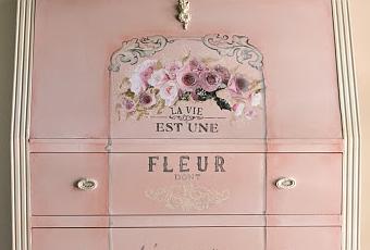 Con un antiguo secreter creé esta versión muy shabby chic, pintando en blanco y rosa viejo, con gran etiqueta en el frente. Mide 80 cm de frente, 1.12m de alto y 45 cm de profundidad.