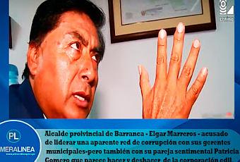Punto Final – difundió un audio donde se escucha al gerente de Administración Vladimir Rojas Pantoja-exigiendo una “coima” a uno de los proveedores de la comuna local.Por otro lado se reveló más audios donde se evidencia el poder que tiene Patria Gomero en la comuna local, bautizada por los vecinos de esa jurisdicción como “La Nadine de Barranca”.Durante una conversación grabada por una ex amiga de la pareja sentimental de Marreros – se escucha claramente que Patricia Gomero tiene la capacidad de ordenar del aparato administrativo municipal – inclusive hasta para anular sanciones o notificaciones.Zoila Chung – quien hasta hace poco apoyo la revocatoria contra Elgar Marreros – presentó otro audio donde el gerente municipal de Barranca - Ilich Barrenechea le hace un trato para que abandone a los revocadores-además de admitir que Patricia Gomero es quien manda en la gestión.“Elgar me ha autorizado de que mate toda tus arrugas (notificaciones y pagos pendientes) y que de aquí en adelante no te molesten. El tema es que pares la revocatoria.Al final del informe – la conductora de Punto Final – Mónica Delta-no ocultó su indignación por lo que Barranca tiene por alcalde provincial.“Hay Dios mío tenemos cada personaje en el país. La verdad que aquí el Poder Judicial tendría que actuar de oficio porque los audios son más que contundentes y valen más que mil palabras” – continuó diciendo – tras expresar que en el Perú hay alcaldes que piensan que los municipios son sus chacras.