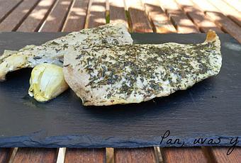 En un bol mezclamos el aceite de oliva con el tomillo. Revolvemos. Salamos el secreto y lo pincelamos con el aceite con tomillo.