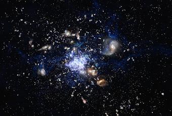 Un equipo de astrónomos ha utilizado el telescopio APEX para sondear un inmenso cúmulo de galaxias que se está formando en el universo primitivo, revelando que, gran parte del formación de estrellas que está teniendo lugar, no sólo está oculta por polvo, sino que se está desarrollando en lugares inesperados. Es la primera vez que se ha podido llevar a cabo un censo completo de la formación estelar en un objeto de este tipo.