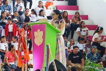 Durante su conferencia titulada “La educación indígena e intercultural como elementos fundantes de la Nueva Escuela Mexicana”, la Directora de Educación Indígena de la Secretaría de Educación Pública (SEP), María de los Ángeles Gordillo, destacó las estrategias implementadas por el Gobierno del Estado para impulsar este sector a nivel local y nacional, subrayando la importancia de una educación de calidad e inclusiva que permita a los pueblos originarios conservar sus tradiciones y fortalecer su identidad.