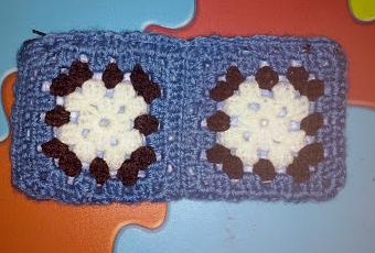 Con cuatro squares pequeñitos, en azul jeans, marrón chocolate y blanco roto. Forro de piqué mil rayas.