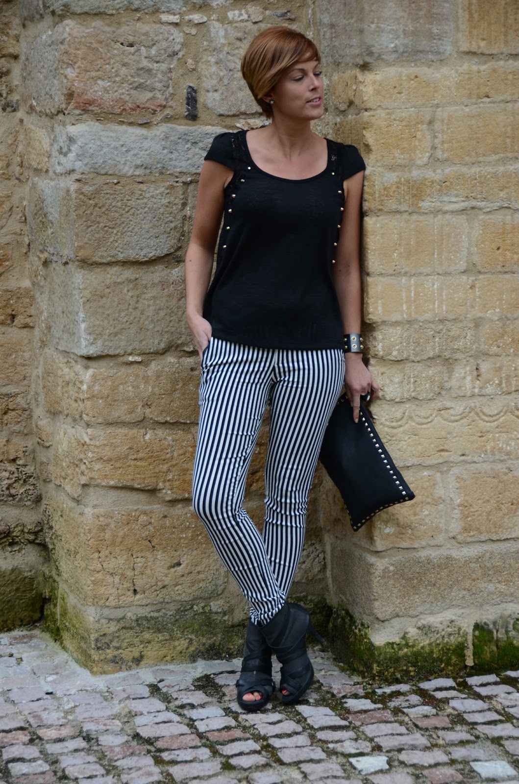 Estos pantalones no es que me gustaran mucho ya que las rayas no eran mi fuerte, pero esta temporada que tuvimos tantas colecciones en blanco y negro me decidi a comprarlos y el resultado fue genial porque ahora me encantan.Tengo varios y en varios tipos de raya diplomatica, pero estos son de mis favoritos por que son de una tela que se llama Bangalina y sientan como un guante.Os dejo las fotos..
