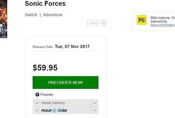 Hoy a través de la web de EB Games se habría filtrado que la fecha de lanzamiento de Sonic Forces sería el 7 de noviembre para PlayStation 4, Xbox One y Nintendo Switch. En caso de confirmarse tendríamos que esperar sólo un poco más para disfrutarlo.