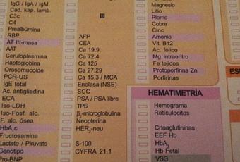 - Hierro: Tres distintas que son para el hierro o lo parecen (Est. met. hierro, transferrina y ferritina).