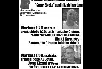 La segunda actividad será el viernes 30 de marzo; consistirá en la proyección del ”Beñat proiektua” de Josu Eizagirre, tras lo cual habra un videoforum con el autor.