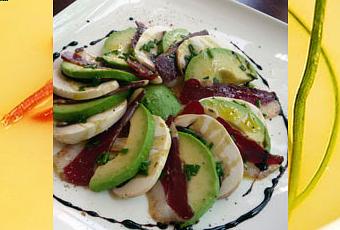 Ingredientes: - 10 lonchas magret pato seco- medio aguacate- 2 champiñones grandes- 10 tallos cebolleta- 3 cucharadas aceite oliva- 1 cucharada aceite de colza- 1 cucharada vinagre vino blanco- 30 ml vinagre balsámico- 10 g azúcar- Zumo de medio limón- Pimienta negraPreparación: