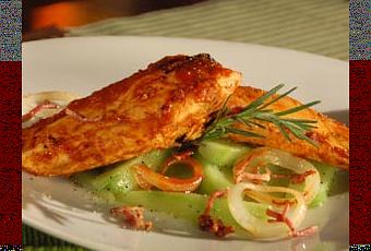 INGREDIENTES:•600g de pechugas de pollo•2 melocotones•1 cebolleta•1 penca de apio•1 zanahori1 cebolla•1 manojito de mejorana•El zumo de 1 limón•50g de requesón •2 cucharadas de aceite de oliva virgen extra•Sal•Pimienta negra en grano