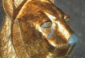 Relieve inspirado en representación de Sekhmet de los tesoros de Tutankamón.