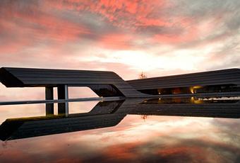Al igual que el interiorismo, el diseño del paisajismo es obra del estudio. Se ha buscado que el jardín y el exterior confluya con la arquitectura. El agua es un elemento que ha formado parte de la vivienda en todo momento, como se puede observar tanto en las láminas de agua de la cubierta como en la piscina interior.