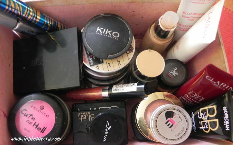 Y lo de "SELECCIÓN", MUY ENTRECOMILLADO JAJAJA! ...Déjenme que les explique, antes de que me digan "ande vas, Barrabás?" Esto que les enseño no es un neceser...Resulta que yo tengo mi caja de potingues-que-más-uso con una selección de bases, coloretes, máscaras, lápices... siempre a mano. De esta forma, me aseguro de ir gastando cositas de manera que en la mayoría de los looks que hay en el blog, no les hablo de polvos, bases...porque suelen ser las mismas hasta que repongo en la cajita (y además se corresponden con las últimas review que haya publicado sobre el tema).