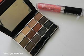 5.- Otros básicos. Finalmente, incluyo mi adorada paleta de Miss Cop que tiene tonos que siempre uso para el arco de la ceja o para dar profundidad en la cuenca con tonos mate...y un gloss, de la VinyMax de Rimmel. Los labiales prefiero no seleccionarlos porque los suelo decidir a medida que voy haciendo el look que sea.