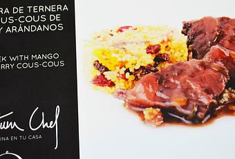 Y dicho ésto, os invito a que deis un paseo por su web porque realmente los precios son muy asequibles y os aseguro que merece la pena.Me enviaron para que probara su producto "Carrillera de ternera con cous-cous de mango y arándanos". La presentación es un envase al vacio dividido en dos partes: en una está la guarnición (el cous-cous) y en la otra la carne. Este envase se encuentra en el interior de una caja de cartón (como la de la foto). Es un producto refrigerado y se recibe en perfectas condiciones.