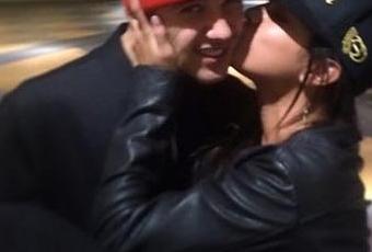 En la imagen, el cantante coge a ¿su novia? en brazos, mientras ella le besa en la mejilla.