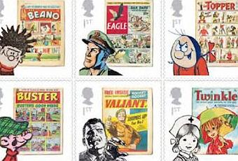 Celebrando los 75 años del Comic Inglés, se ha lanzado una serie de sellos basados en sus personajes más emblemáticos: Desperate Dan and The Dandy, Dennis The Menace and The Beano, Dan Dare and Eagle, Beryl The Peril and Topper, Tiger and Roy Of The Rovers, The Four Marys and Bunty, Buster and… Buster, The Steel Claw and Valiant, Twinkle and Twinkle, and Judge Dredd and 2000AD.