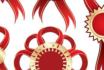 Completa colección de sellos, cintas y moños en vectores gratis con una perfecta combinación de colores rojo y dorado. Disponible en formato vectorial EPS.