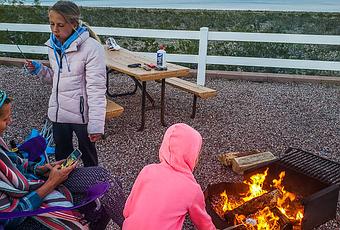 - Las fogatas nocturnas no han sucedido tanto como nos gustaría. Muchos de los lugares tienen prohibiciones de fogata. Así que nos regocijamos cada vez que se nos presenta la oportunidad de quemar un poco de madera y hacer tostadas de algunas mores.