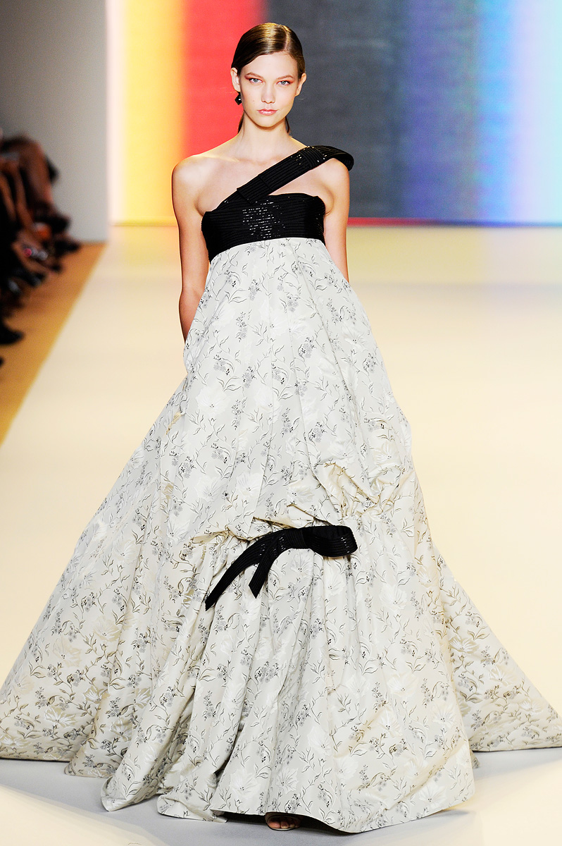 Carolina Herrera se decantó por una gama de colores desde el blanco matizado para dar paso a los beiges y grises, algunos metalizados y otros mezclados con tonos muy claros, a los naranjas, fucsias o verdes profundos, sin faltar su emblemático rojo o el negro clásico.