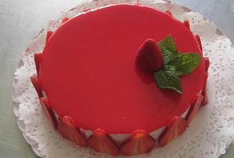 SEMIFRIO DE FRESAS CON GLASEADO BRILLANTE ROJO