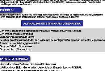 El Presente Seminario tiene como objetivo que los participantes apliquen las modificatorias establecidas en la Resolución de Superintendencia Nro 248-2012/SUNAT con la finalidad de realizar un adecuado uso del PLE 4.0 (Programa de Libros Electrónicos)