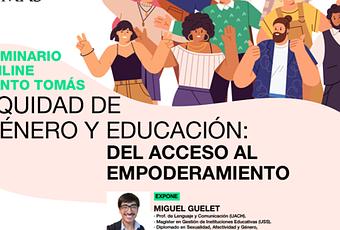 "Junto con saludar, tengo el agrado de invitar quienes integran el área y departamento de orientación de Enseñanza Media, para que se inscriban en el nuevo Seminario Online Santo Tomás. En esta oportunidad abarcaremos las temáticas de Equidad de Género y Educación, respecto al tránsito y camino a recorrer desde el acceso al empoderamiento, esta actividad se realizará vía online el jueves 24 de agosto y el jueves 7 de septiembre. En esta ocasión contaremos con la exposición de Miguel Guelet, docente de dilatada trayectoria y miembro de Eureka!, quien además posee un CV que lo avala como experto en Sexualidad, Afectividad y Género. Puede escoger un día inscribiéndose, dando clic en la imagen."
