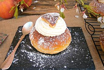 De nuevo las chicas de Bake the World, nos proponen un viaje muy dulce!! esta vez a los países nórdicos para degustar el Semlor o Semla, una especialidad sueca tradicional que se consume desde el inicio de la cuaresma. Se trata de un bollo dulce elaborado con cardamomo, que luego es excavado, rellenado de mazapán, cubierto de nata y espolvoreado de azúcar glass . Así que os podéis imaginar que se trata de una "bomba" calórica deliciosa.He mencionado que estos bollos son con sabor a cardamomo, una especia que le aporta un riquísimo y fresco sabor, un aroma entre menta y límon y algo picante, y que aporta frescura a los productos horneados. Así que si tenéis oportunidad de conseguirlo, añadir el cardamomo, os entusiasmará.